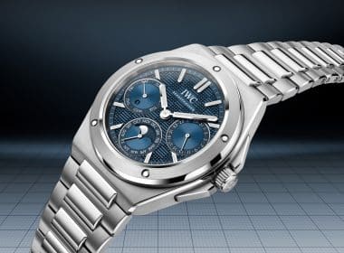 El anillo externo en la esfera está hecho con titanio antracita, y las manecillas, también esqueletadas, son de acero inoxidable pulidas totalmente a mano. La caja hace juego con la hebilla de ardillón, realizadas en titanio. Por su lado, la correa, de piel de aligátor en color gris mate, revela las suturas en color gris oscuro.
