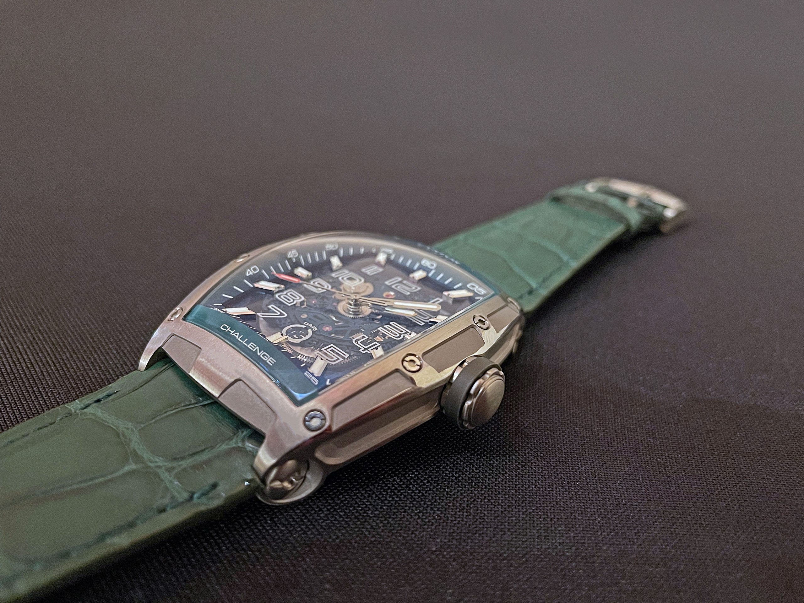 Es sumergible 100 metros y lleva correa de aligátor, avestruz o piel de becerro, todas en tonos verde. Es una edición limitada de ocho piezas, tres de oro rosa y cinco de titanio. El precio de la serie de oro rosa es alrededor de 33,000 dólares y la edición de titanio de aproximadamente 15,000 dólares.