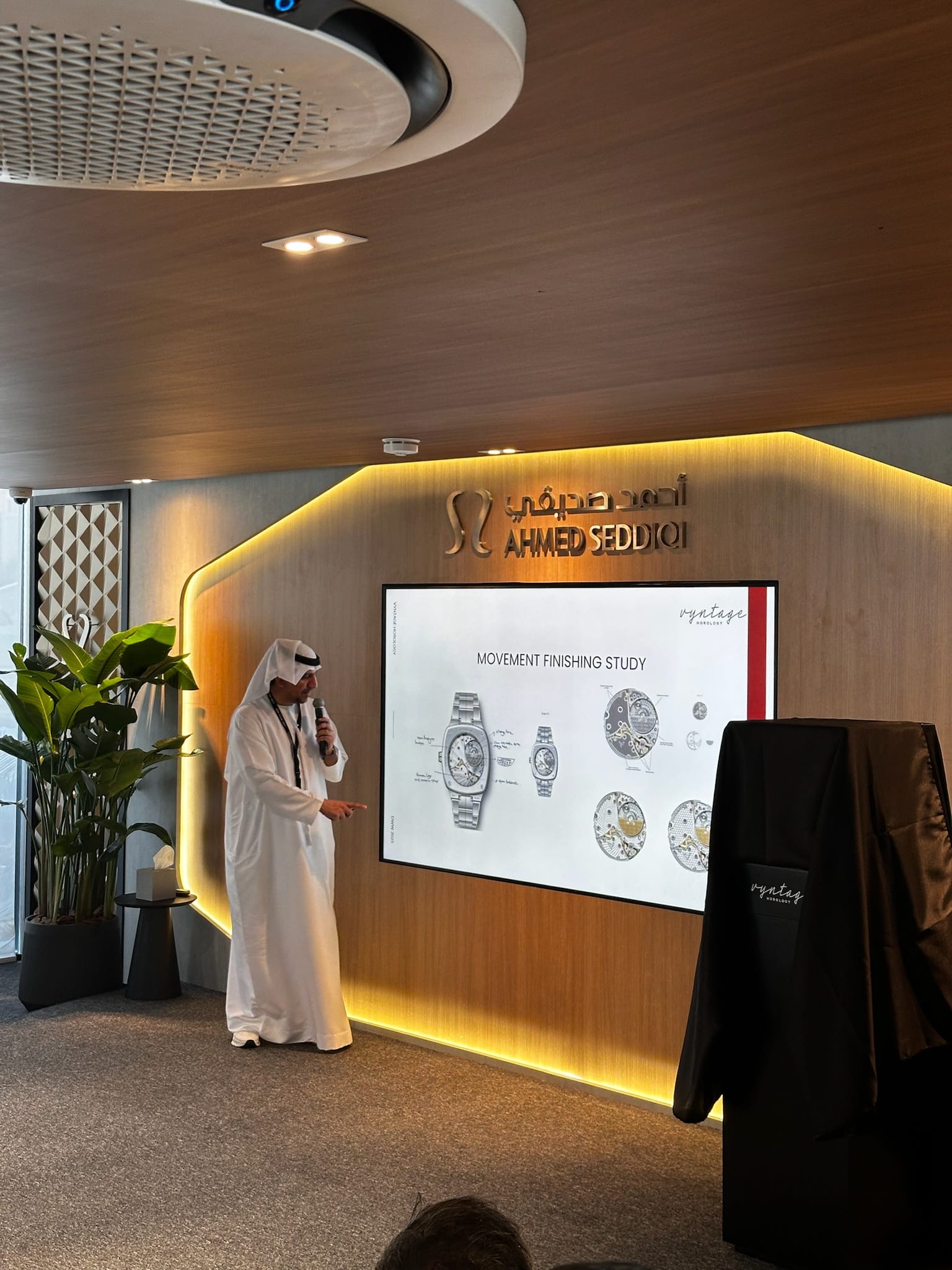 Pero también fueron reveladoras las múltiples ediciones limitadas para celebrar el 75 aniversario de Ahmed Seddiqi & Sons: Gerald Charles, HYT, H. Moser & Cie., Nivada Grenchen con numerales árabes orientales vintage, Hublot con motivos árabes, De Bethune, Ferdinand Berthoud, Greubel Forsey, Parmigiani Fleurier con dial de coral, Doxa, Girard-Perregaux y Vyntage… El mensaje era claro: Ahmed Seddiqi es un jugador de la industria cuya influencia las marcas más importantes reconocen.