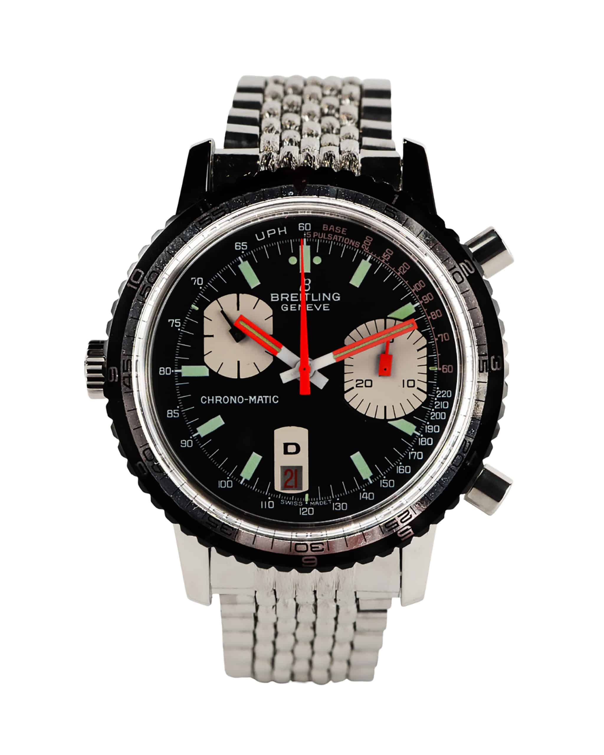 Un ejemplo perfecto del interés de Breitling Rewind es el ejemplar del Chrono-Matic 2110-15 que sus responsables trajeron al evento mexicano y que ahora está en exclusiva en El Palacio de Hierro, templo de la alta relojería en Ciudad de México. Sin duda es un reloj clave en la historia de Breitling como pionero de la introducción de los movimientos de cronógrafo automático en su catálogo. La pieza elegida por Breitling Rewind corresponde a una versión evolucionada del Chrono-Matic, con la referencia 2110-15. Este modelo salió al mercado en 1972 y se diferenciaba de sus antecesores por la incorporación del Calibre 15, equipado ahora con un segundero independiente. Lo más curioso del 2110-15 es la distribución asimétrica de la carátula, con el contador de minutos del cronógrafo junto al índice de las 3 horas y el segundero independiente a las 10 horas. Sin duda, un testigo privilegiado de la historia de Breitling.