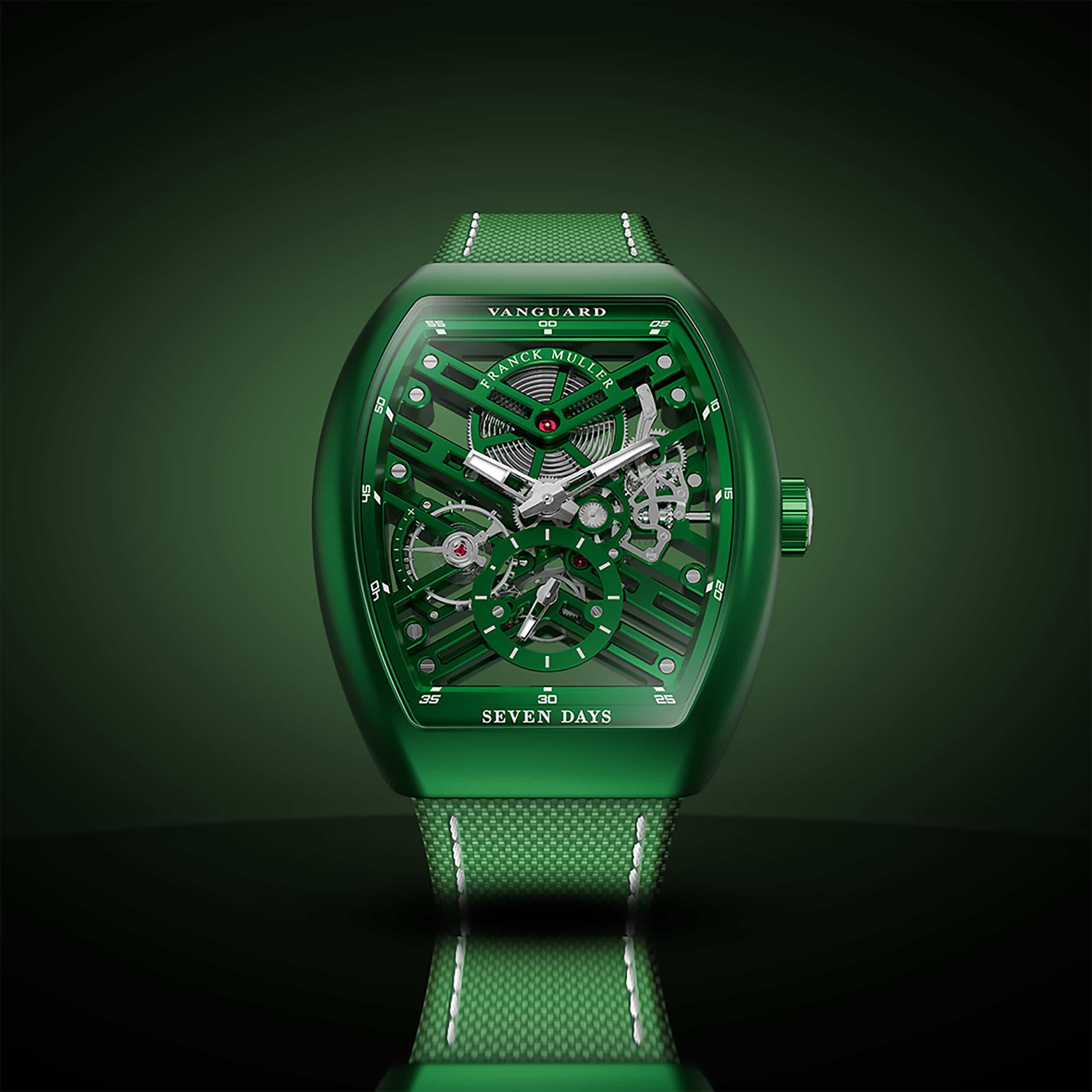 Franck Muller conoce bien estas virtudes y las ha aprovechado de manera especial en su colección 7 Days Power Reserve. Su movimiento manual destaca por su construcción esqueletada. El Vanguard Royale Bauxite traslada el elemento cromático al exterior al emplear el aluminio anodizado en la caja. El reloj se presenta como un conjunto armónico donde interior y exterior van de la mano. A esta imagen unitaria también contribuye la original construcción del Vanguard, sin asas y con la pulsera integrada. Su perfil curvado consigue que, a pesar de sus grandes dimensiones, el reloj sea extremadamente cómodo de llevar. Ahora, esta colección única y exclusiva aterriza en El Palacio de Hierro.