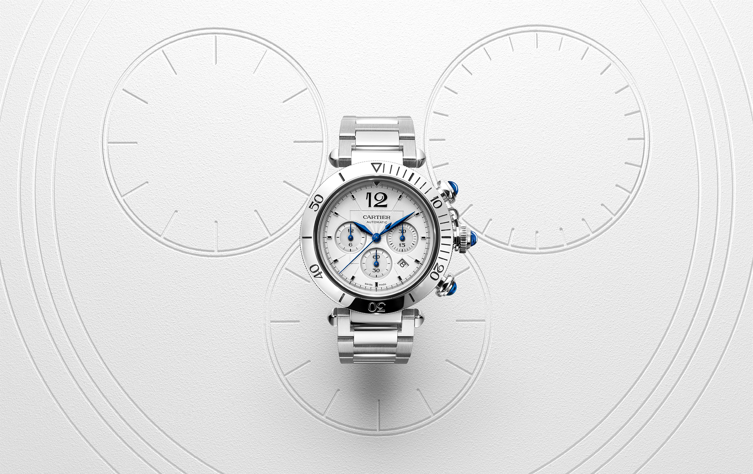 Hecho para medir los récords, el nuevo cronógrafo de Cartier multiplica la potencia y la visibilidad del reloj Pasha. Una declaración que refuerza el diseño del reloj, acentuado por la presencia de un bisel graduado giratorio y dos pulsadores. Fieles a la versión histórica de los primeros cronógrafos Pasha, estos dos pulsadores engastados con un cabujón conservan el volumen del diseño original. “La interpretación en cronógrafo se distingue con una sencilla animación y se atreve con una verdadera alternativa estética. De este modo, la más reciente adición a la familia Pasha contribuye a resucitar el mito bajo una nueva luz”, asegura Marie-Laure Cérède, directora de creación relojera de Cartier.