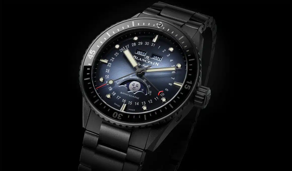 Blancpain lanza Bathyscaphe Quantième Complet, su primer modelo de cerámica que contrasta con esferas soleil. Estilo urbano de altas prestaciones submarinas