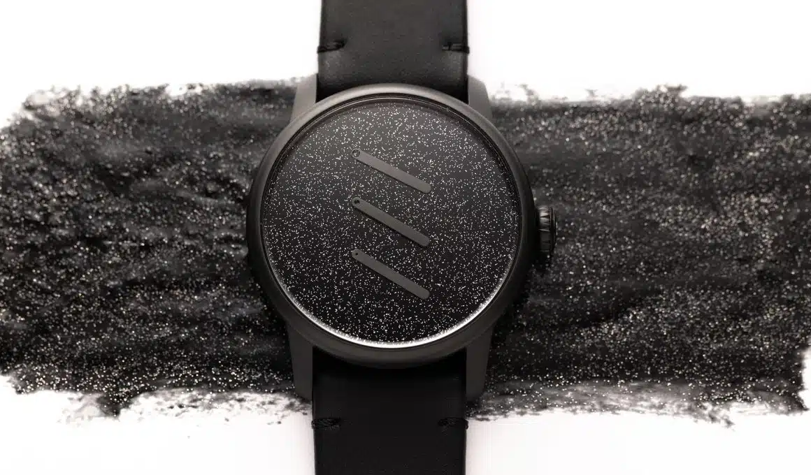 Un Regulador con lectura de hora singular y esfera que juega con el negro sobre negro e incrustaciones brillantes.
