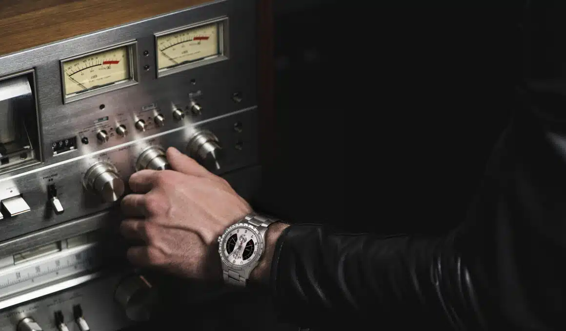Reservoir sigue explorando la lectura. Cronógrafo birretrógrado con el diseño de los amplificadores estéreo analógicos.