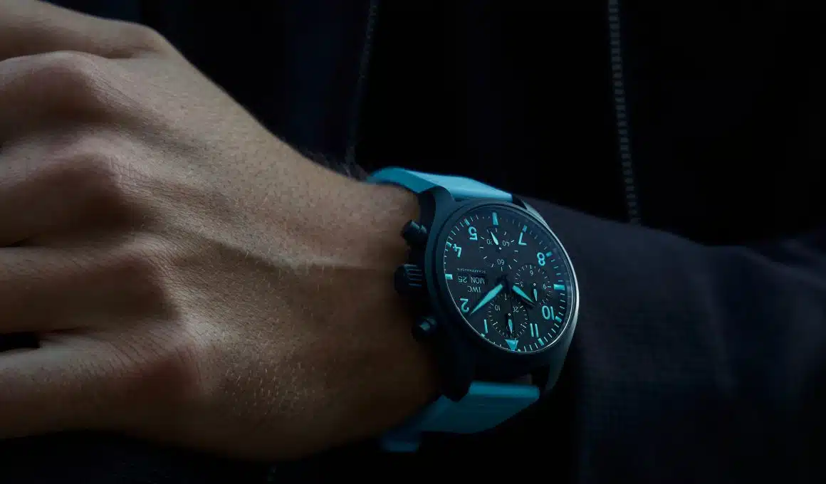 IWC presenta dos Relojes de Aviador creados con George Russell, ediciones limitadas en cerámica negra con detalles en el color azul del piloto