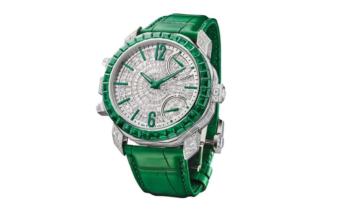 Cuando la joyería y la alta relojería de Bulgari se encuentran. Octo Roma Emerald Grande Sonnerie proclama el cénit de la mecánica de la firma italiana.