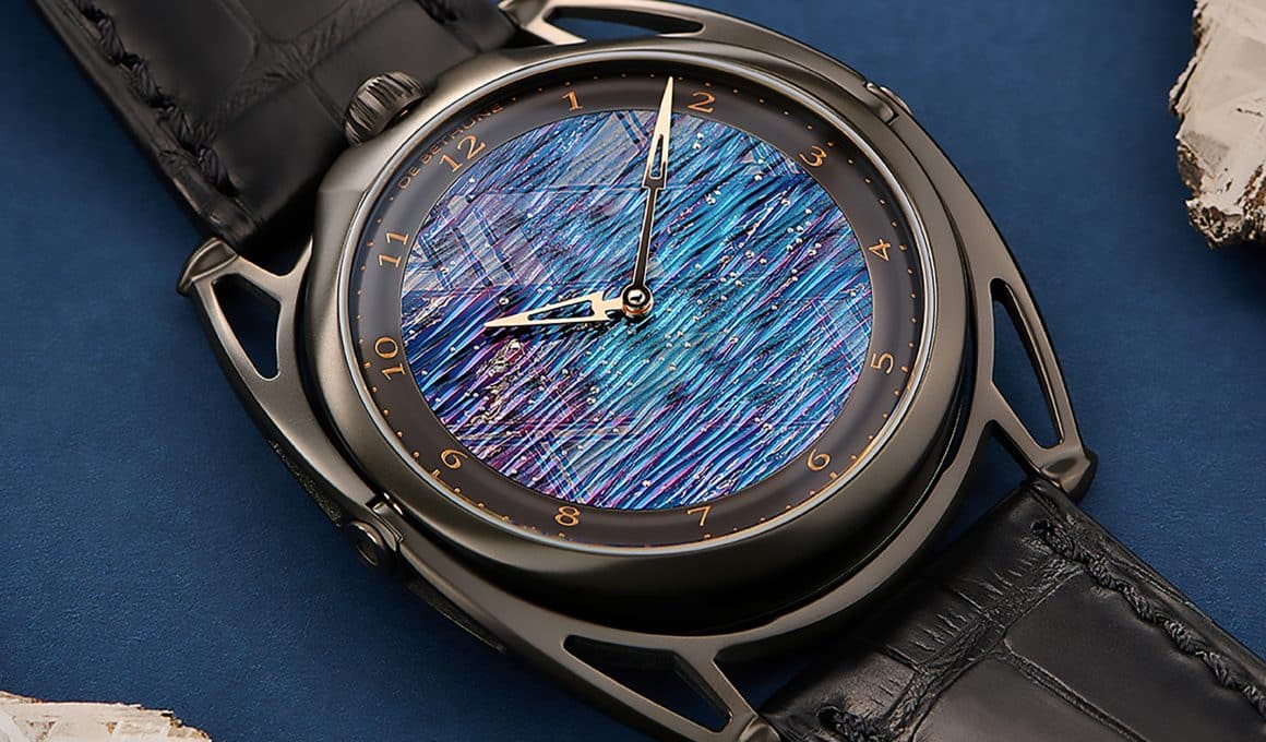 La esfera del nuevo DBxs Aérolite tiene un guilloché espectacular. Un patrón aleatorio del meteorito Muonionalusta que viene de otra galaxia.