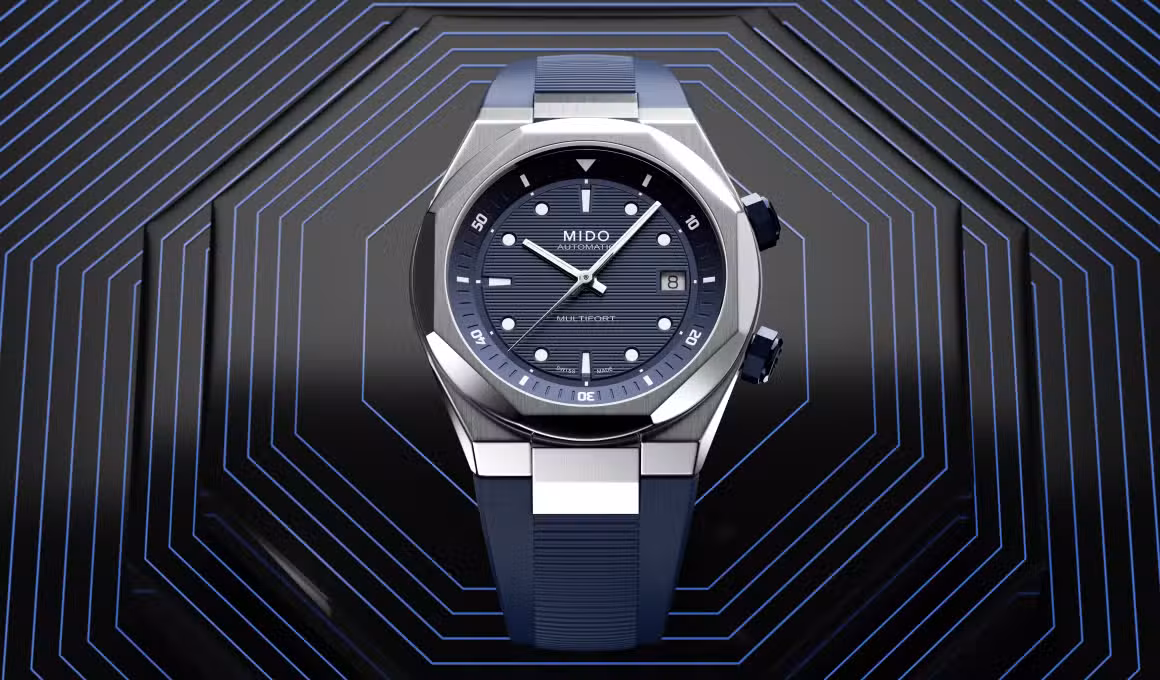 Multifort 8 Two Crowns de MIDO lleva un bisel interno giratorio que, activado por una segunda corona, permite medir el tiempo con más precisión.