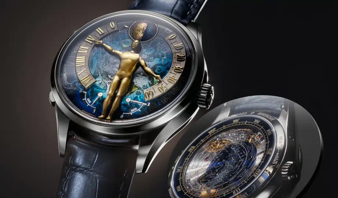 Inspirado en el monumental La Quête du Temps, este guardatiempo de doble cara reúne complicaciones astronómicas, indicaciones retrógradas y un despliegue artesanal único en solo 20 piezas.