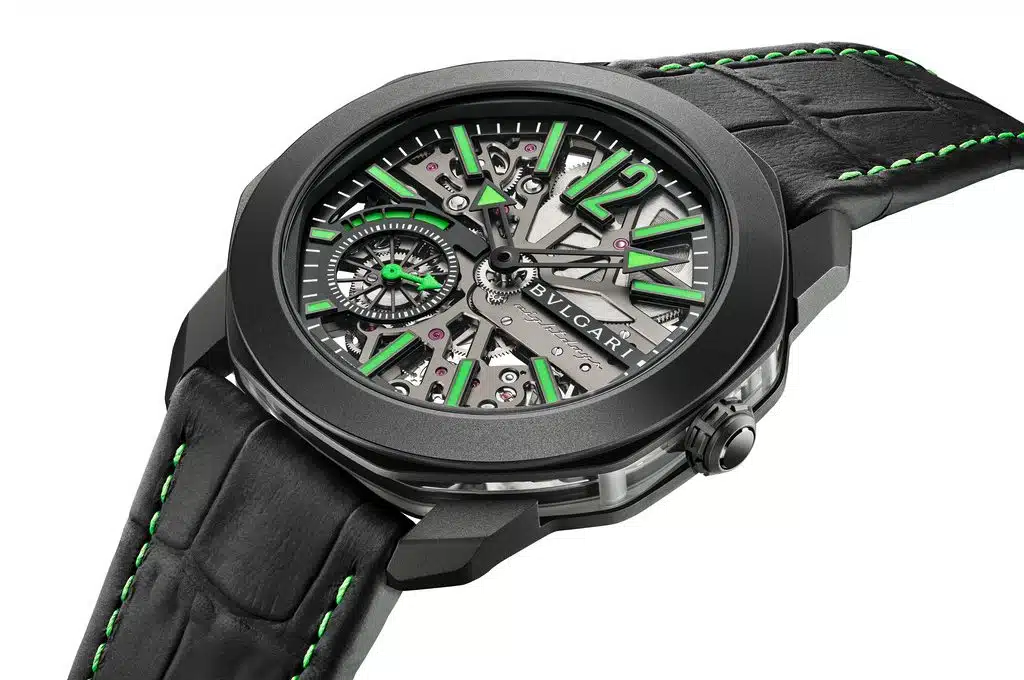 La estética más atrevida del Octo Roma da la bienvenida a este modelo deportivo y lujoso. Ahora con movimiento Finissimo, caja de titanio y potentes detalles verdes.