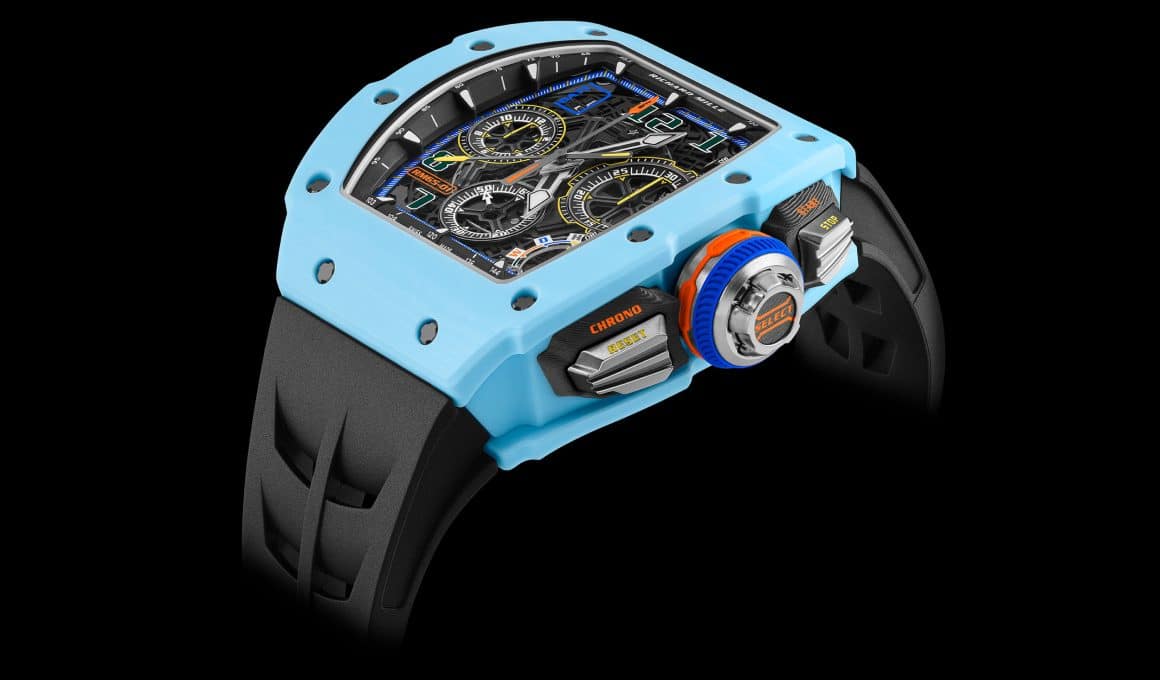 El RM-65-01, el reloj más complejo de Richard Mille se viste de llamativos colores hasta convertirse en un Fórmula 1 que se conduce desde la muñeca.
