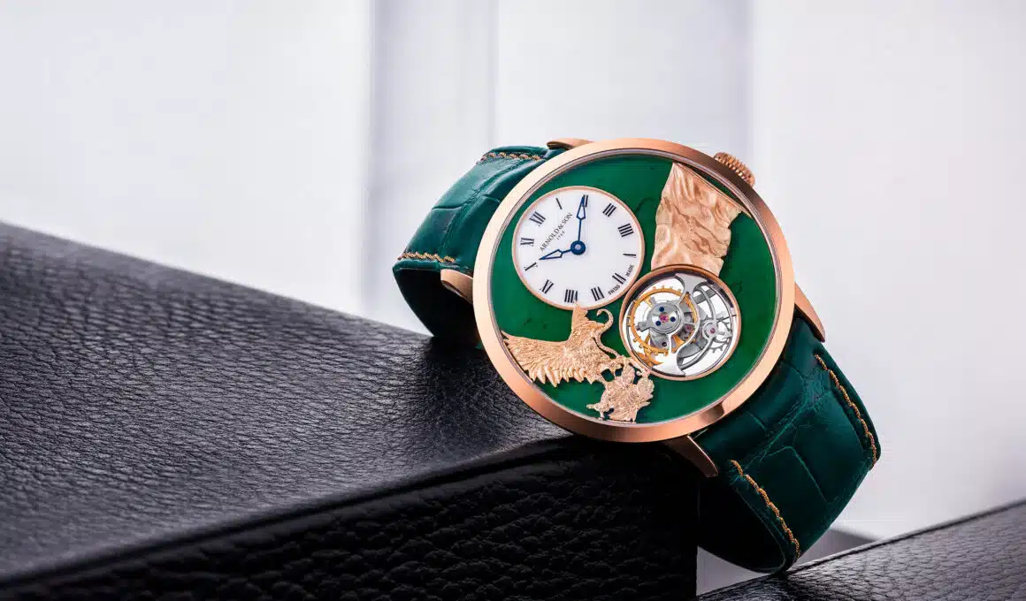 El mito de Aztlán y la bandera ondeante inmortalizada sobre el jade. Una pieza única de Arnold & Son que rinde homenaje a México.
