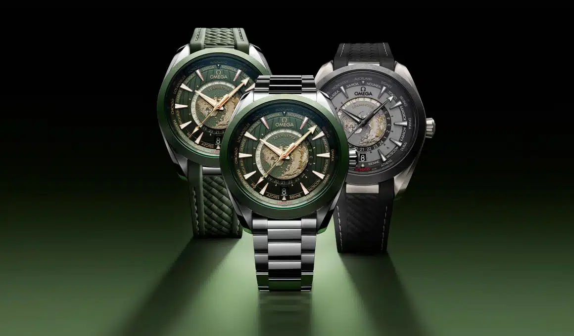 Seamaster Aqua Terra Worldtimer se presenta en una interesante versión de titanio y otros dos modelos de acero con esfera verde.