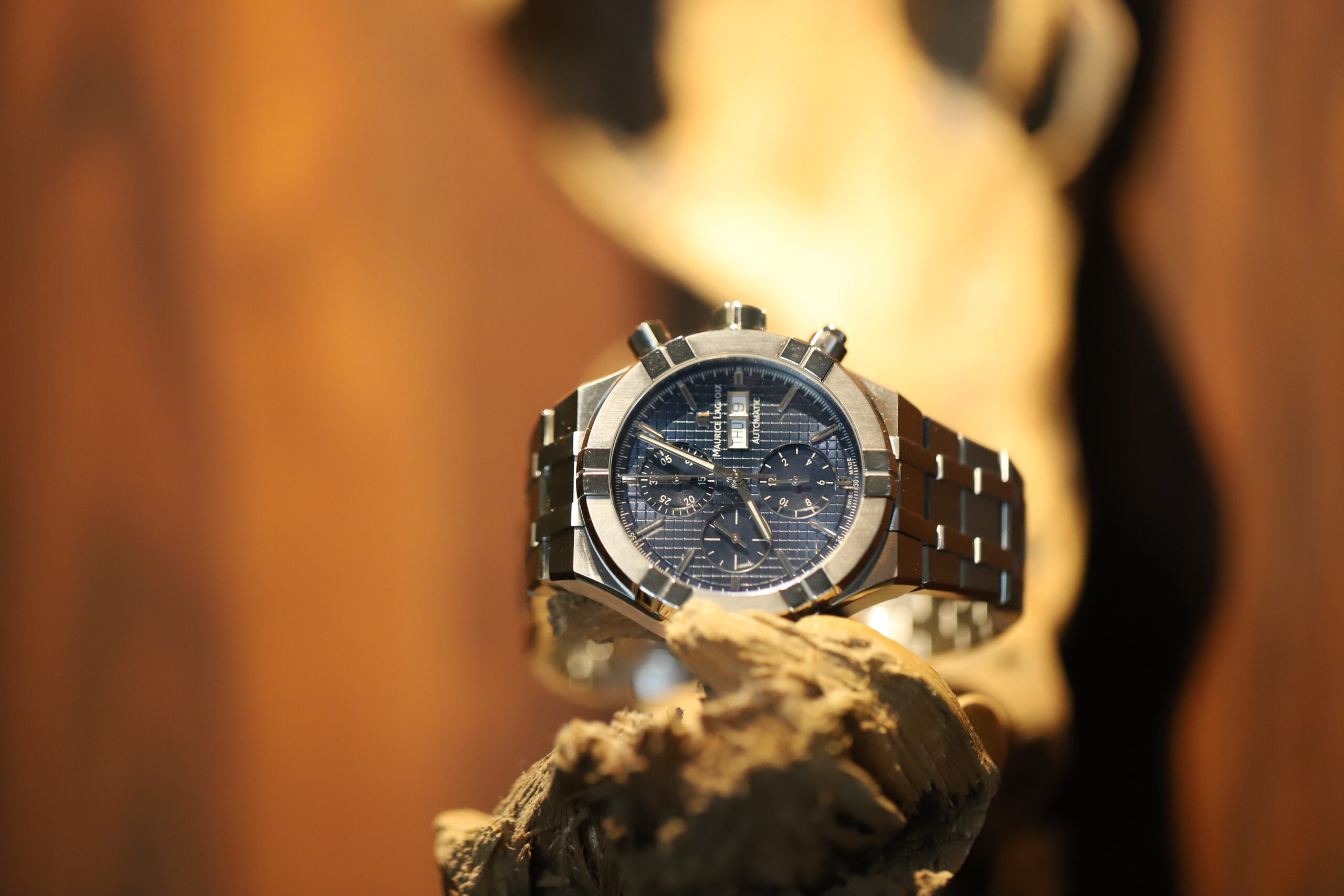 El recorrido por España se acerca el final Los toques mexicanos en el menú de alimentos nos recuerdan que no hemos dejado México. Que, de hecho, ni siquiera hemos salido de la ciudad. Sin embargo, hemos viajado. Y, además, estamos por probar las dos últimas etiquetas de este itinerario. El azul de la carátula de nuestro Aikon de Maurice Lacroix contrasta con el potente rojo de los vinos de Familia Torres. Y se ha mostrado perfecto durante toda la experiencia. Es un reloj cómodo, que queda con todo y cuya relación calidad-precio es inmejorable. Por cerca de tres mil dólares, ofrece, bajo el sello swiss made, la resistencia del acero en caja de 44 mm y brazalete —más una correa extra de caucho— y soporta hasta 20 metros bajo el agua. Además, el Aikon Automatic Chronograph con movimiento automático ML112 muestra en su carátula con cepillado soleil a cuadros, anillos pulidos y contadores acaracolados, las horas y minutos en el centro más segundero pequeño a las 9 y contador de cronógrafo de 30 minutos a las 12 y de 12 horas a las 3, además de día y fecha a las 3 horas.