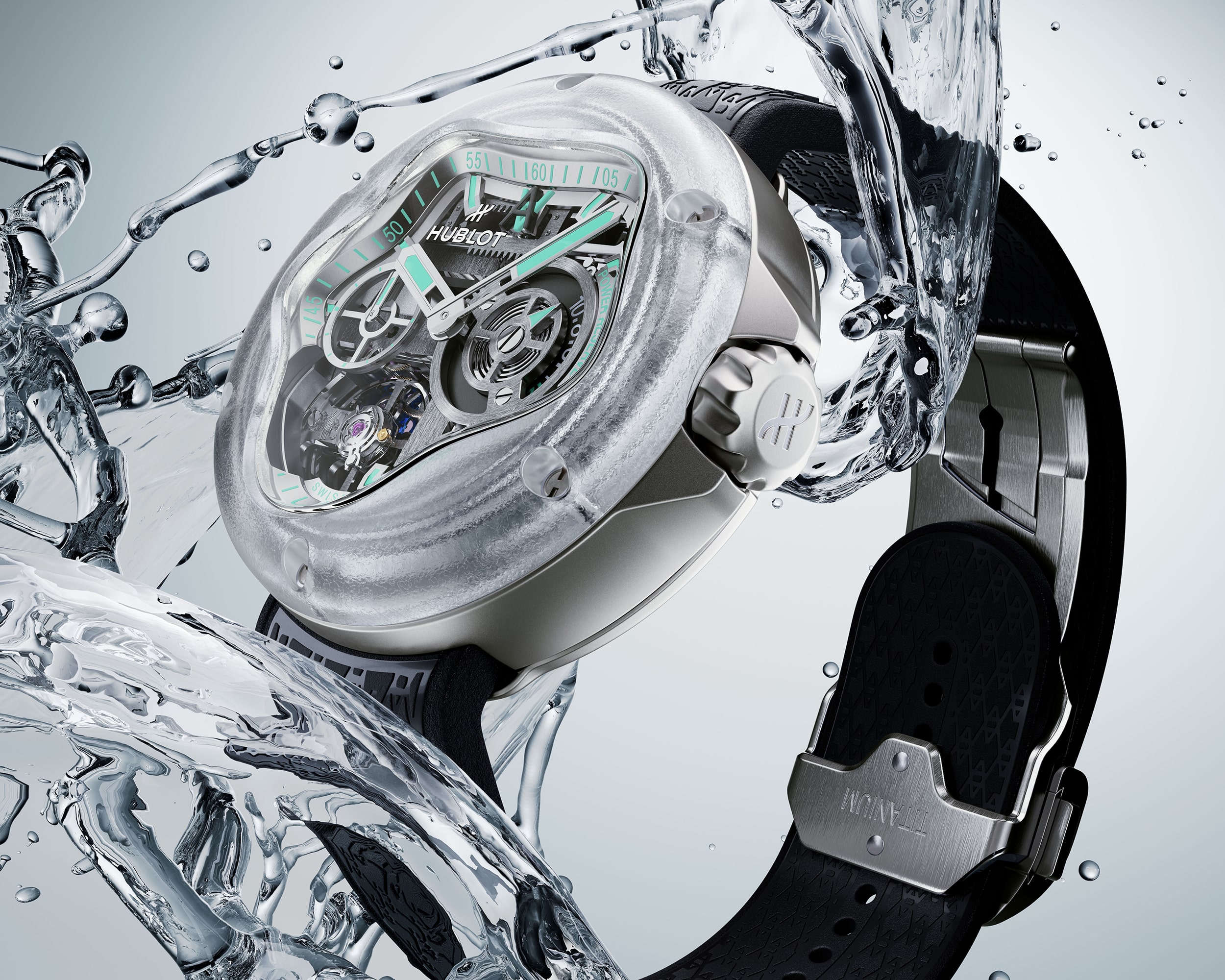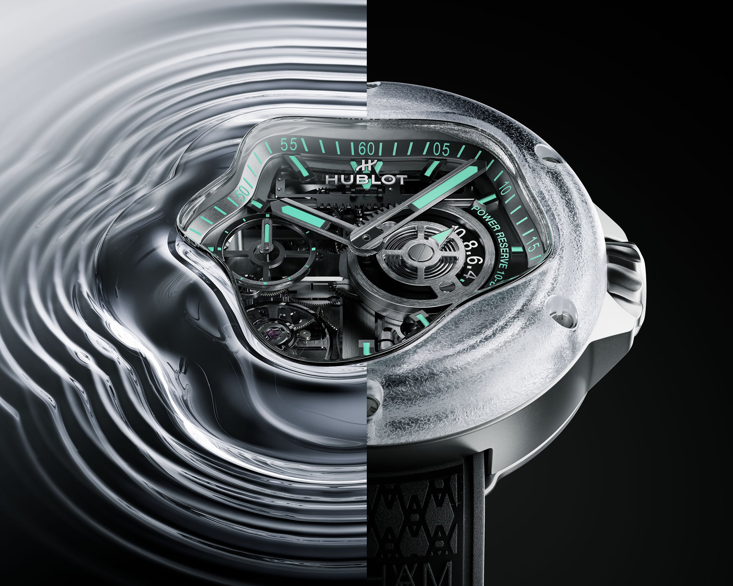 La dupla Hublot-Daniel Arsham ya nos habรญa demostrado de lo que es capaz con el MP-16 Arsham Droplet, un fabuloso reloj de bolsillo transformable presentado en 2024. La segunda parte de esta colaboraciรณn entre la marca y el artista es otra pieza de รฉpoca. Se trata del MP-17 MECA-10 Arsham Splash Titanium Sapphire, una ediciรณn de 99 piezas que se inspira en โla dinรกmica esencia del agua, las formas orgรกnicas y la transparenciaโ, explica Hublot.