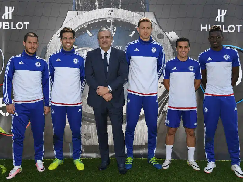 Hublot y el Chelsea anunciaron su alianza en agosto de 2015, el primer dรญa de la temporada 2015-2016 de la Premier League. Ahora Hublot tiene una gran presencia en el estadio del club en Stamford Bridge: en los marcadores LED, en los soportes publicitarios a ras de campo y en los relojes que se encuentran en zonas clave del estadio.