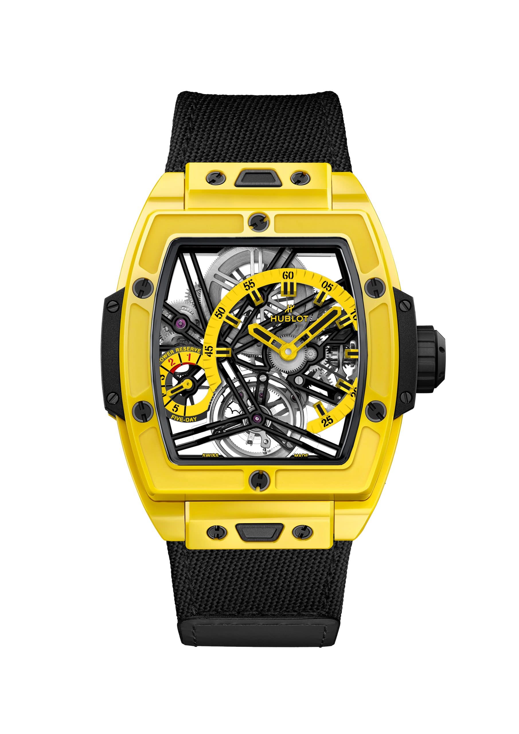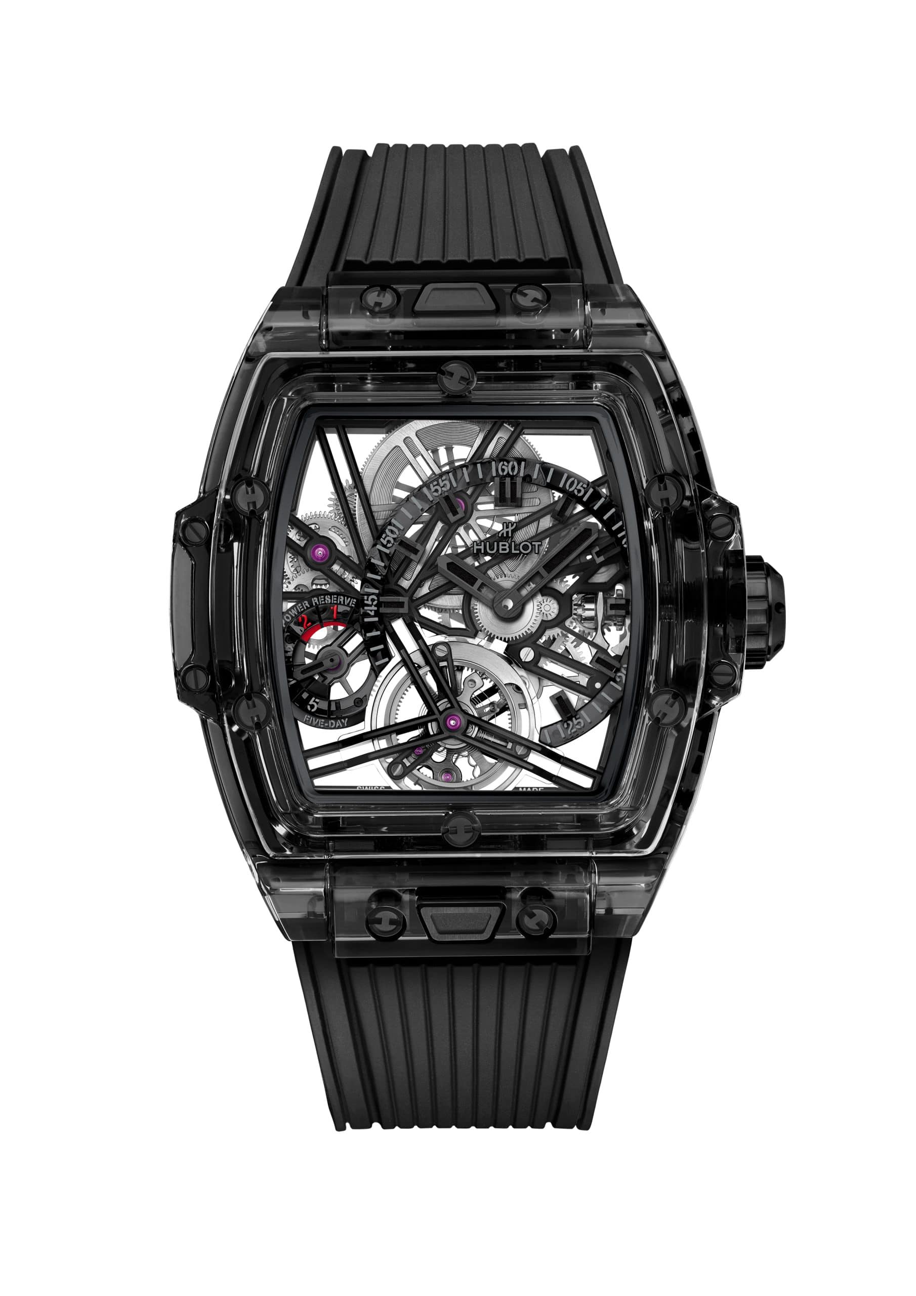 El Arte de la Fusión de Hublot no solo refleja su capacidad para combinar materiales, tradiciones y técnicas, sino también su dominio absoluto sobre ellos. Este principio es el que abanderan las nuevas referencias de la línea Spirit of Big Bang Tourbillon 5-Day Power Reserve, un modelo que hasta hace poco solo se ofrecía con caja de cerámica blanca o de carbono. Ahora, la colección con silueta tonneau se amplía con cuatro colores más: Red Magic, Black Magic, Yellow Magic y Sky Blue. Y también incluye un modelo hecho en zafiro negro.