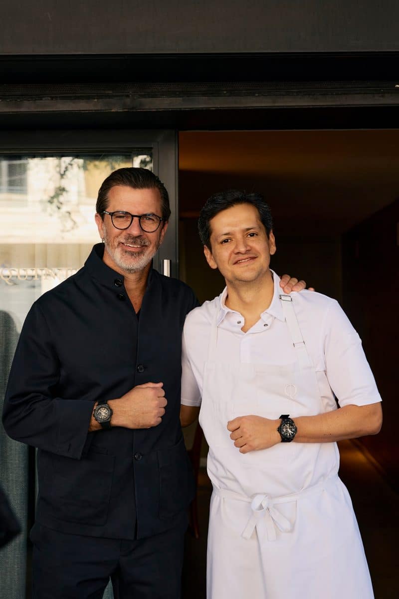 Bajo el mantra del Art of Fusion de Hublot, el tiempo dejó de medirse en minutos para convertirse en un ingrediente más dentro de un menú de alto nivel, donde la precisión se saborea. La escena reunió a dos pesos pesados de la gastronomía contemporánea: Andreas Caminada, con tres estrellas Michelin y una trayectoria consolidada desde 2010 en Schloss Schauenstein, y Jorge Vallejo, referente absoluto de la cocina mexicana actual, con dos estrellas Michelin (2025) y el tercer lugar en The World’s 50 Best Restaurants.