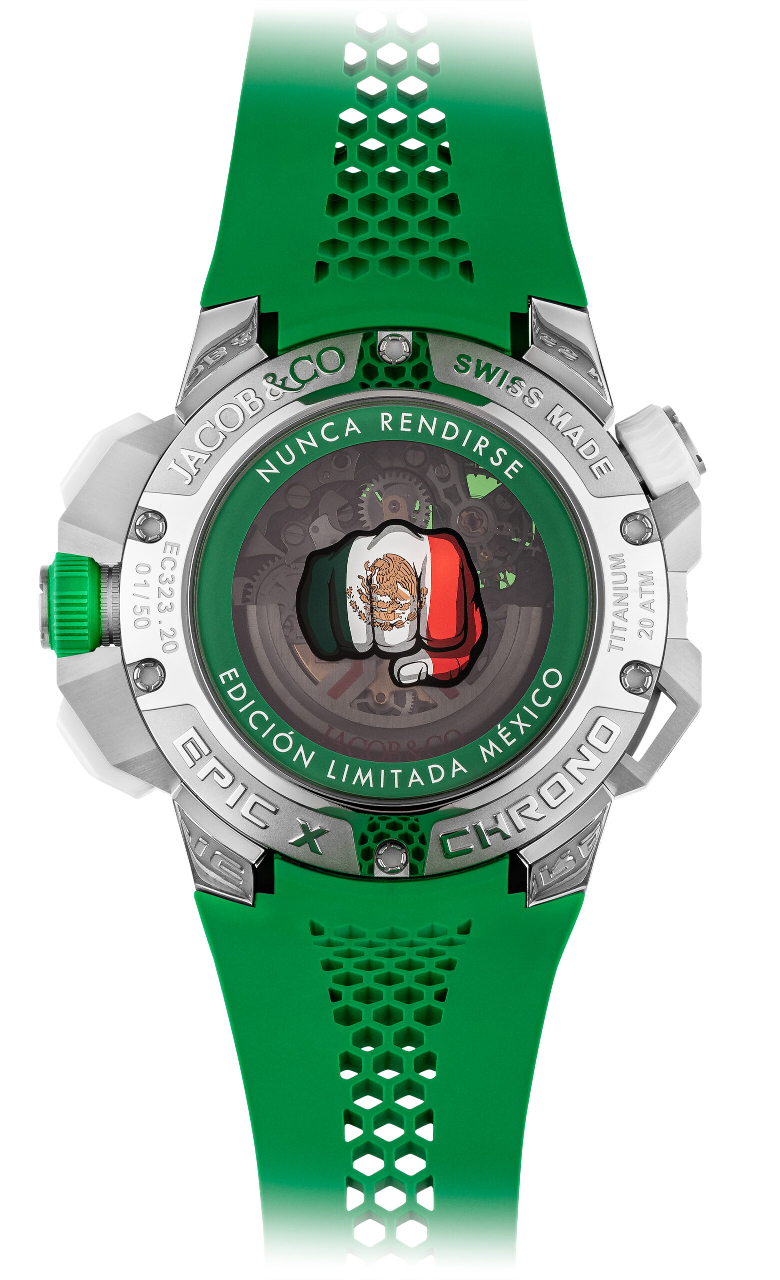 Con una nueva colección, Jacob & Co. sigue apostando por el mercado mexicano, destacando la resiliencia característica de su gente. Una selección de piezas de alto valor técnico y artístico. Combina una vez más los dos mundos de alta relojería y alta joyería en este tributo a nuestro mercado. Jacob Arabo dialoga ahora con aquellos que siempre eligen la opción más difícil. El lema “Nunca Rendirse” aparece en la carátula y también en el fondo del reloj. Además, se complementa con un singular puño para representar ese espíritu de resistencia y superación.