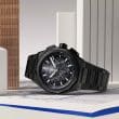 Esta nueva interpretación se presenta con una caja de 41 mm en cerámica negra, satinada y pulida, que subraya la geometría icónica de la colección. El contraste visual se intensifica gracias al movimiento con acabado dorado, visible tanto desde el anverso como desde el reverso. El bisel dodecagonal y las aristas marcadas refuerzan la identidad arquitectónica, donde cada superficie cumple una función estética y estructural.