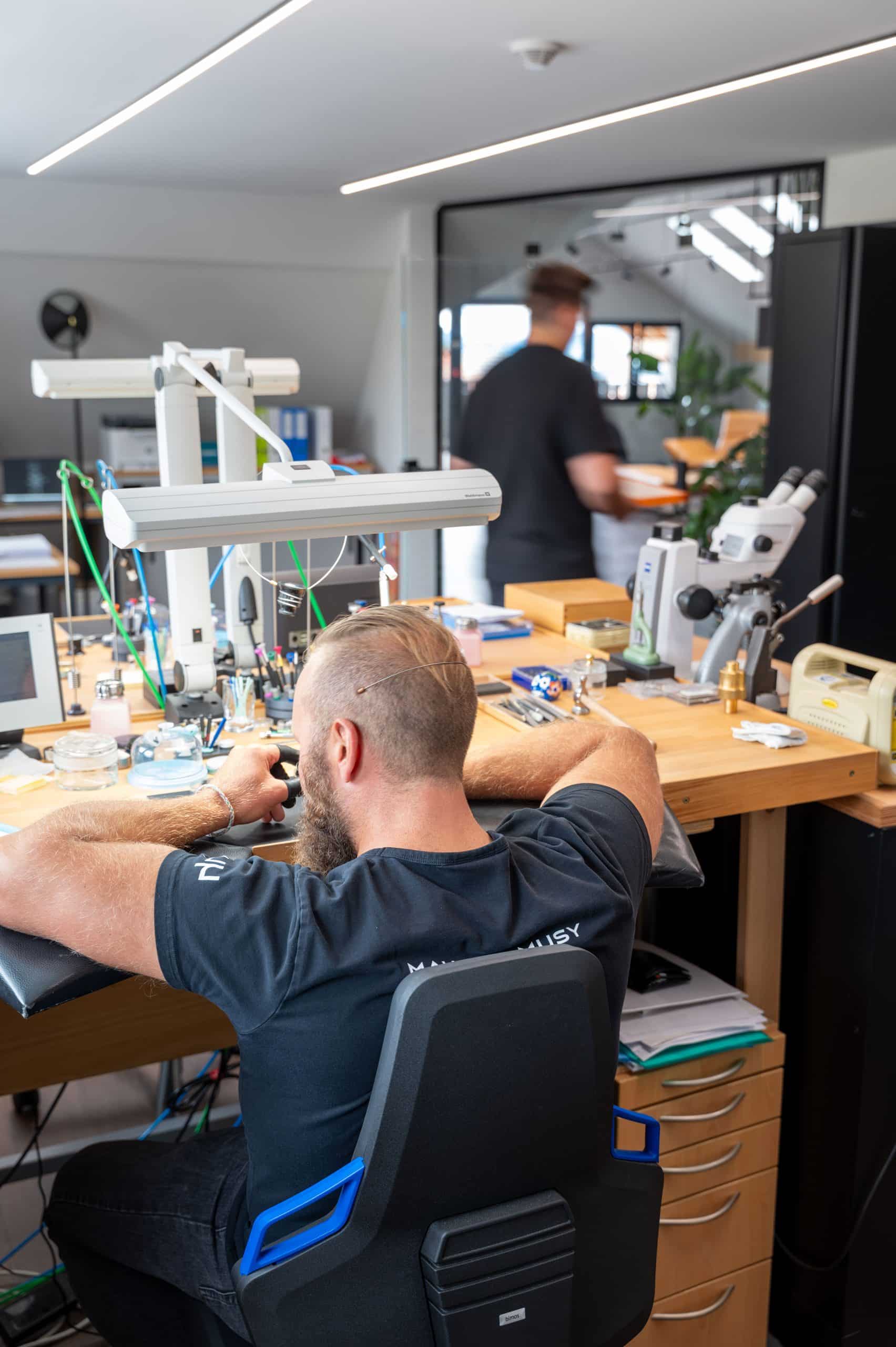Y es aquí cuando empieza la aventura de Mauron Musy. “La verdad es que fue algo bastante loco. Al principio solo quería hacer unos pocos relojes para regalar a amigos y familiares por Navidad. Hablo del año 2013. Me puse en contacto con Eric Mauron, a quien ya conocía de mi etapa formativa en mecánica. Comenzamos a trabajar y vimos que el proyecto podía acabar en algo mucho más serio. Al final, en lugar de relojes bajo el árbol de Navidad, hubo años de investigación y desarrollo”.