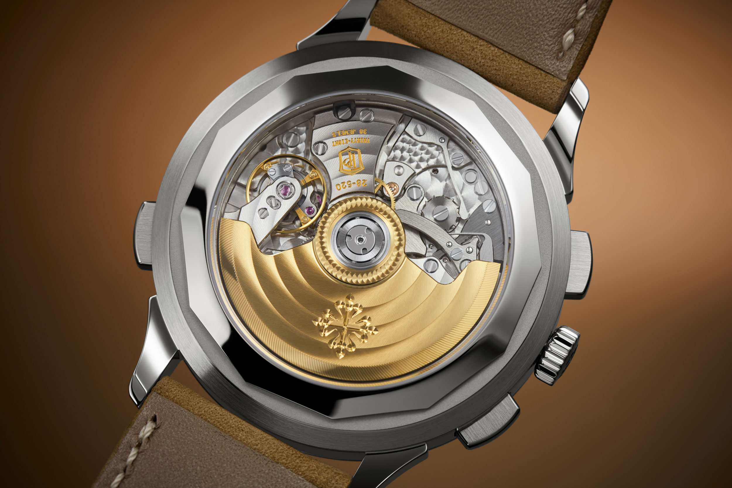 La estética de la carátula es de lo más llamativa. Color opalino dorado (en oro rosa) con el mismo motivo decorativo de carbono en el centro de la carátula como gesto inspirador de aquella decoración de la referencia 6007 que marcó la inauguración del nuevo edificio PP6 en Plan-les-Ouates en 2020. Es la primera versión en acero del cronógrafo flyback automático con hora universal. Otro modelo de culto que se adorna con sofisticado estilo deportivo y con un elegante sello vintage. Se entrega con dos correas de piel de becerro —gris pardo graneado y beige con acabado nobuck—.