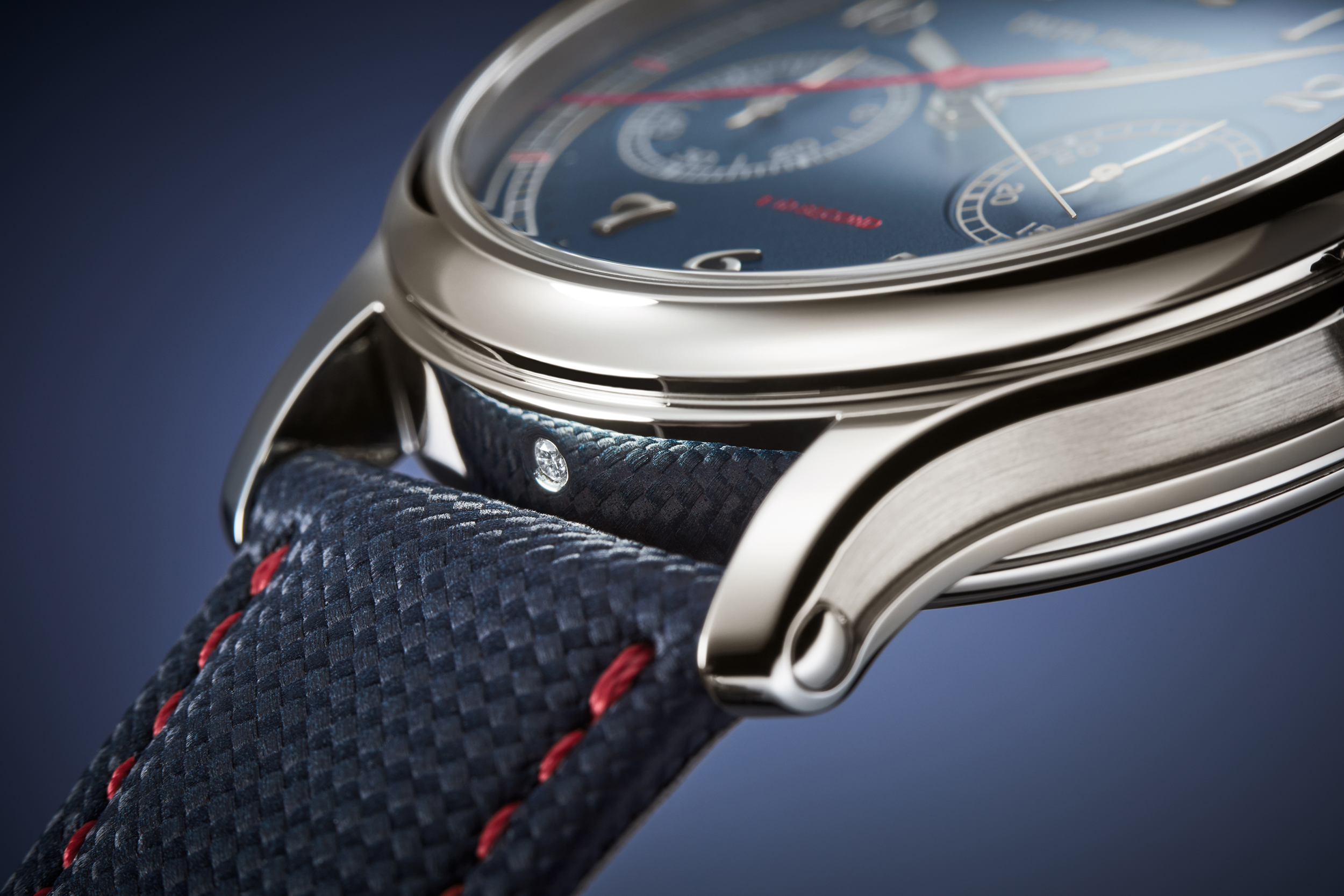 El 5470P cuenta con dos agujas centrales de segundos del cronógrafo. La primera sigue el giro habitual de 60 segundos por vuelta. A esta se suma una aguja complementaria en acabado rojo que cubre la vuelta completa en doce segundos. De este modo, cada intervalo entre los segundos, de 30 grados, ofrece el espacio suficiente para incluir una escala de décimas que se pueda leer con total exactitud.