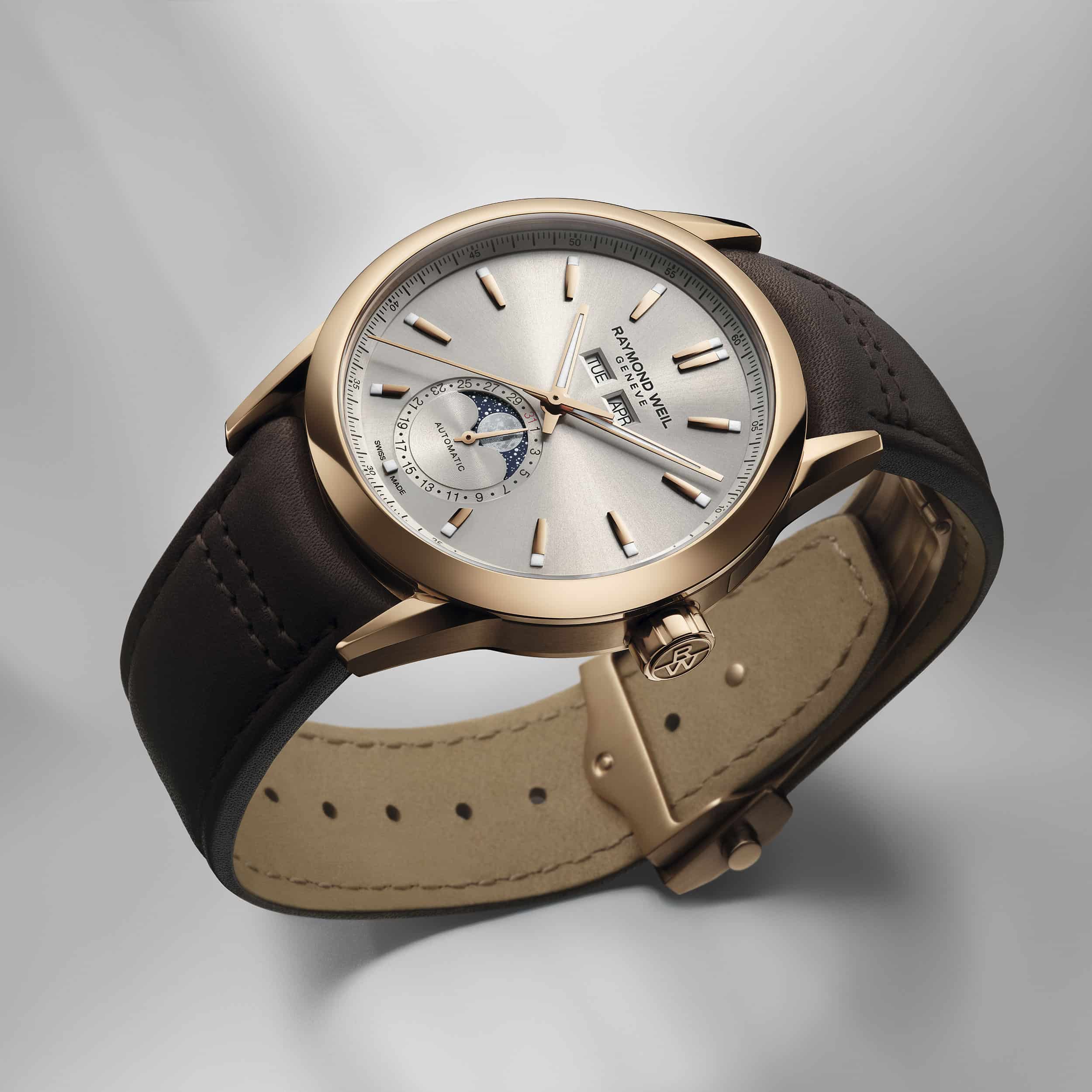 Un proceso que se ha mantenido hasta nuestros días. “Antes hablábamos los smartwatches y de la incertidumbre que su llegada produjo. La única solución que teníamos era distanciarnos cómo producto. Diferenciarnos. Y el mejor camino pasaba por refinar nuestra filosofía de relojería suiza tradicional, con un importante salto de nivel en mecánicos, materiales y diseño”. El trabajo ha dado sus frutos y, como apunta el directivo, el 70 % de las ventas actuales de Raymond Weil corresponde a relojes mecánicos, cuando hace diez años esta cifra era apenas del 30 %. “Esta medida implica un lógico aumento de los precios, pero aún nos mantenemos como una firma accesible, con un rango de precios que va desde los 1,500 a los 4,000 euros”, añade el directivo.