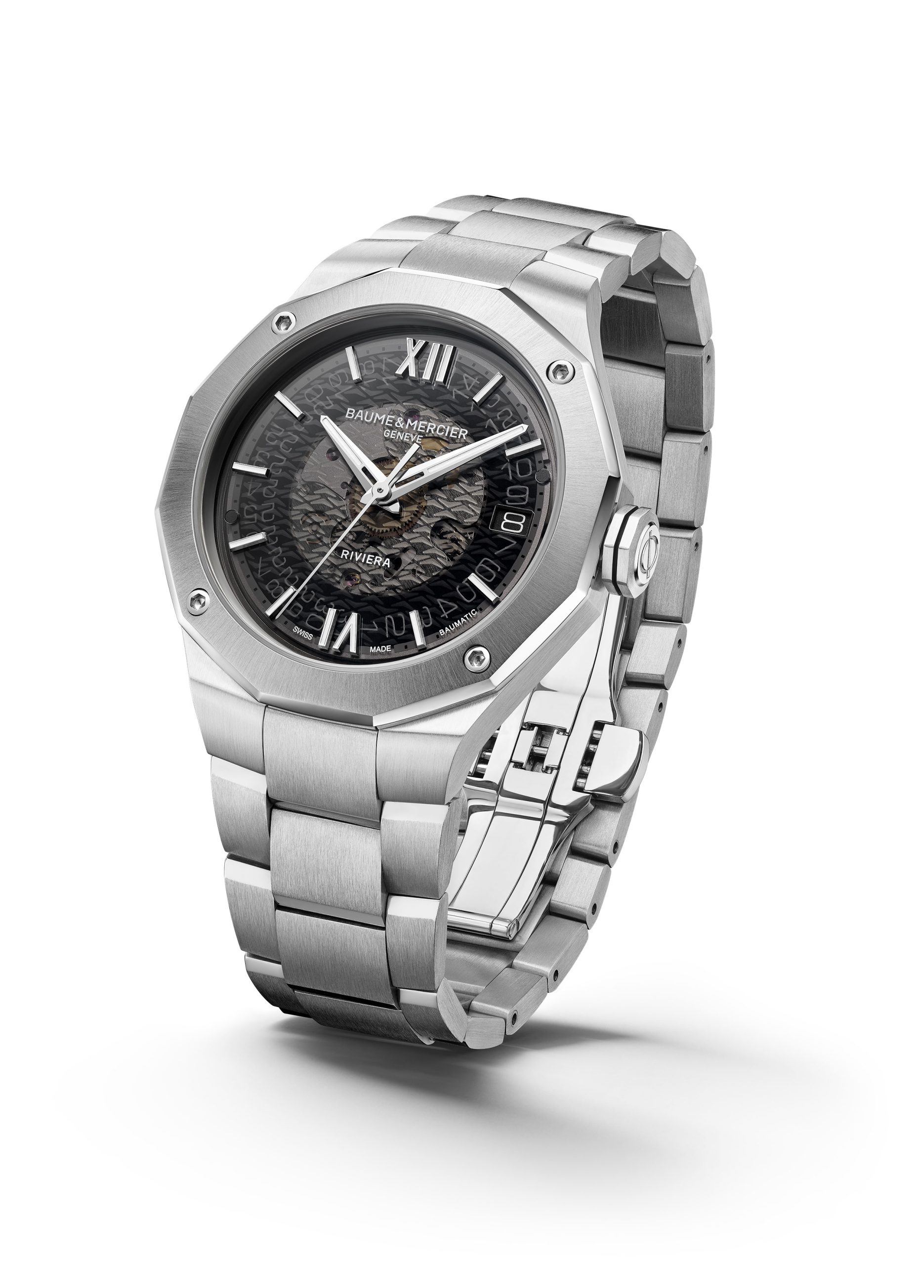 —Teníamos el Riviera de buceo de 1981, pero si ven la pieza, nos inspiramos un poco, pero la nueva versión es bastante diferente. Ahora tiene un bisel unidireccional con corona atornillada, 300 metros de resistencia al agua, movimiento Baumatic y, como todo movimiento Baumatic, un beneficio de seis años de garantía adicional, lo que significa que el período de garantía de tiempo para el cliente será de ocho años en todos estos movimientos.