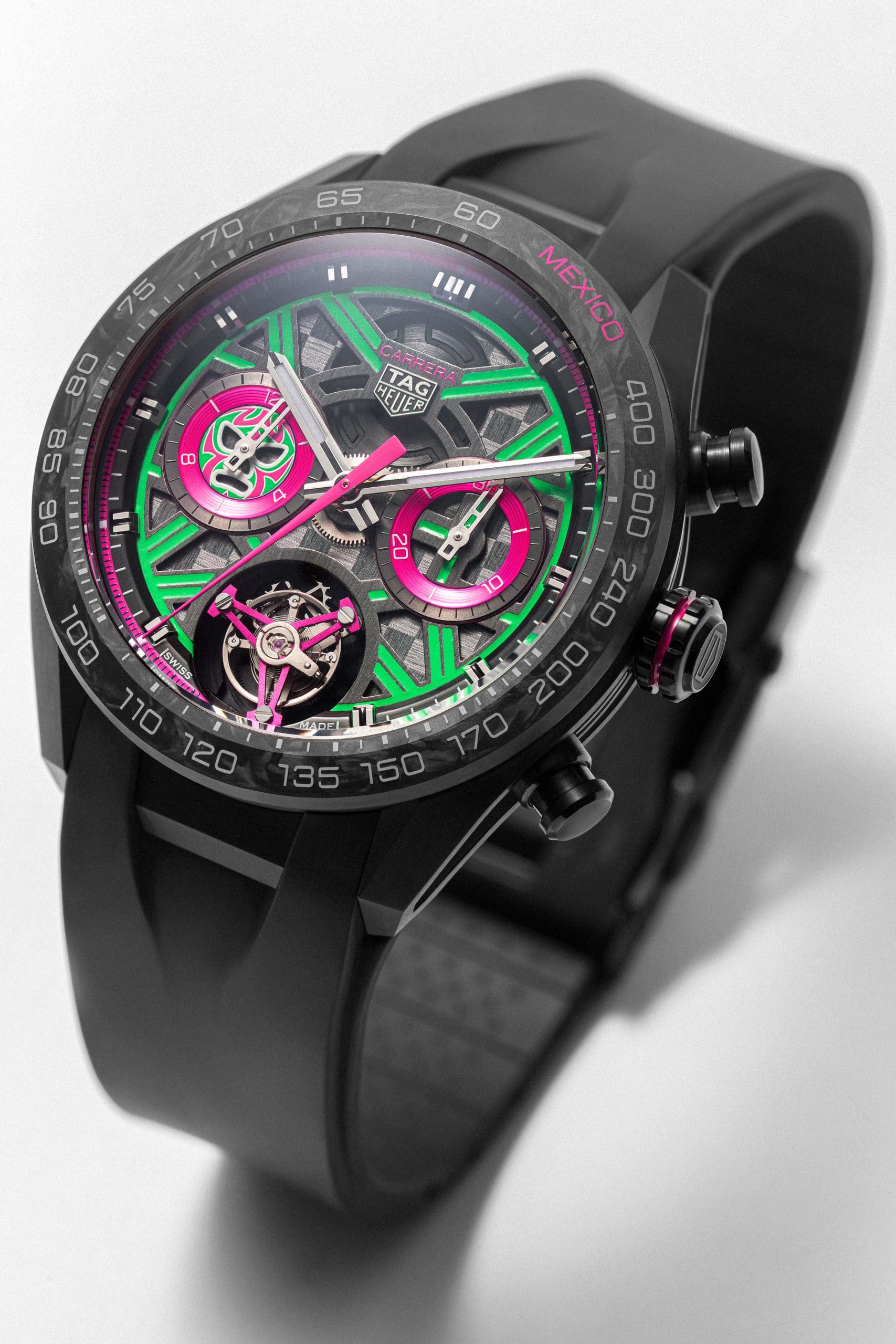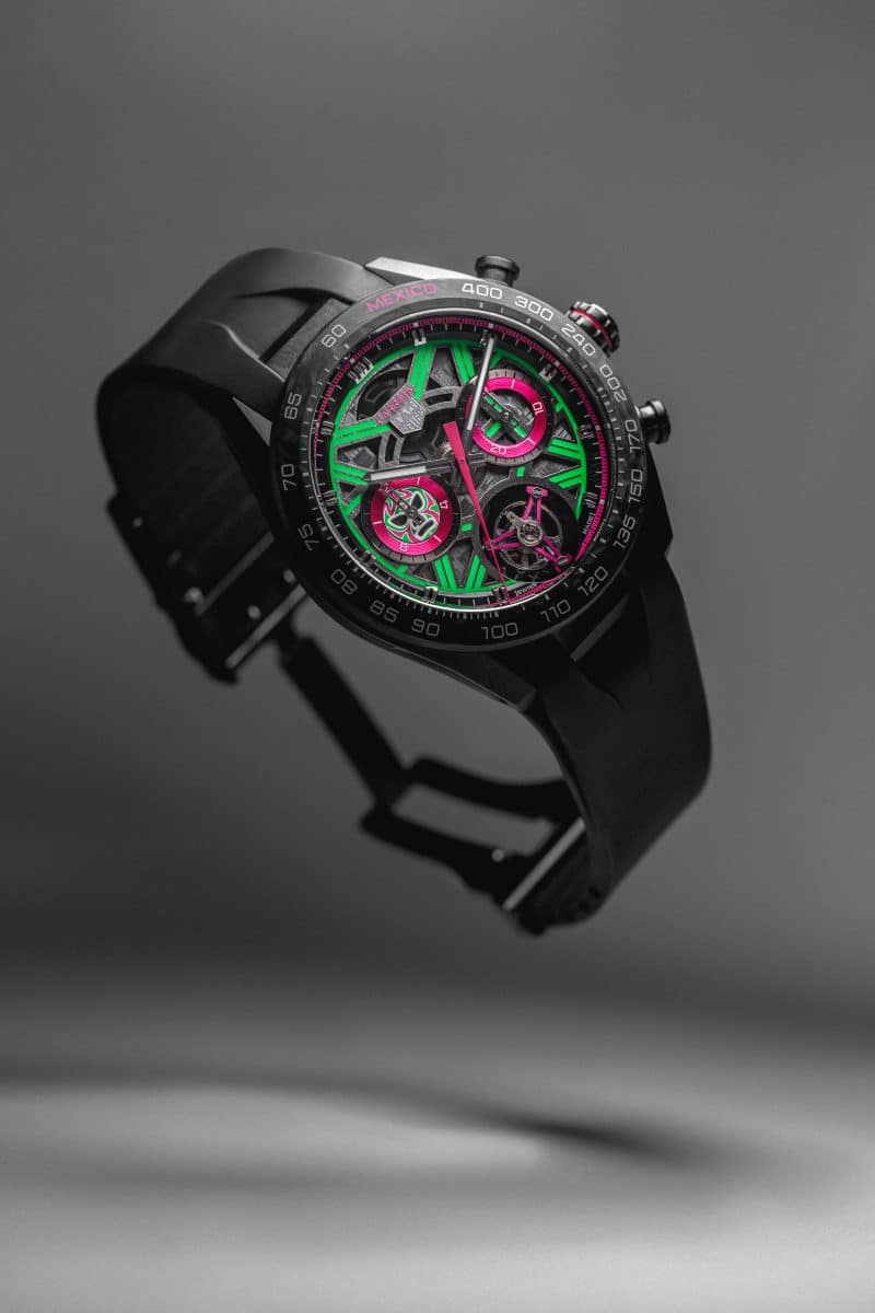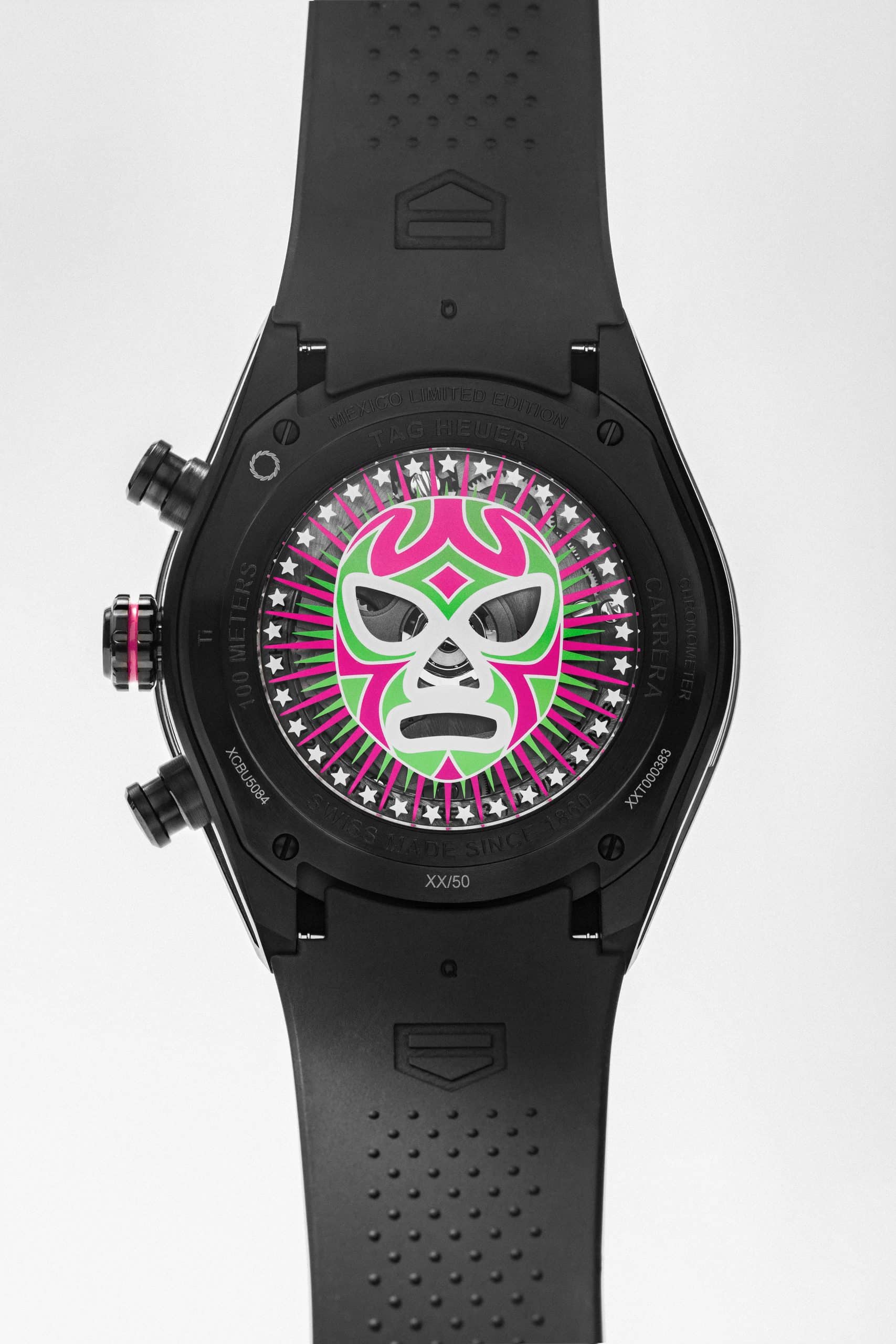 Dentro late el calibre TH20-09, un movimiento automรกtico con funciones de cronรณgrafo, fecha y, como golpe final, un tourbillon a las 6 en punto, lacado en fucsia. No es solo espectรกculo: es ingenierรญa de precisiรณn lista para enfrentar cualquier combate contra el tiempo. Limitado a 50 piezas, el TAG Heuer Carrera Chronograph Extreme Sport Tourbillon Ediciรณn Lucha Libre es, en sรญ mismo, como un cinturรณn de campeonato en la muรฑeca: exclusivo, poderoso y cargado de simbolismo. Un recordatorio de que, como en el ring, la victoria llega con disciplina, pasiรณn y orgullo por las raรญces.