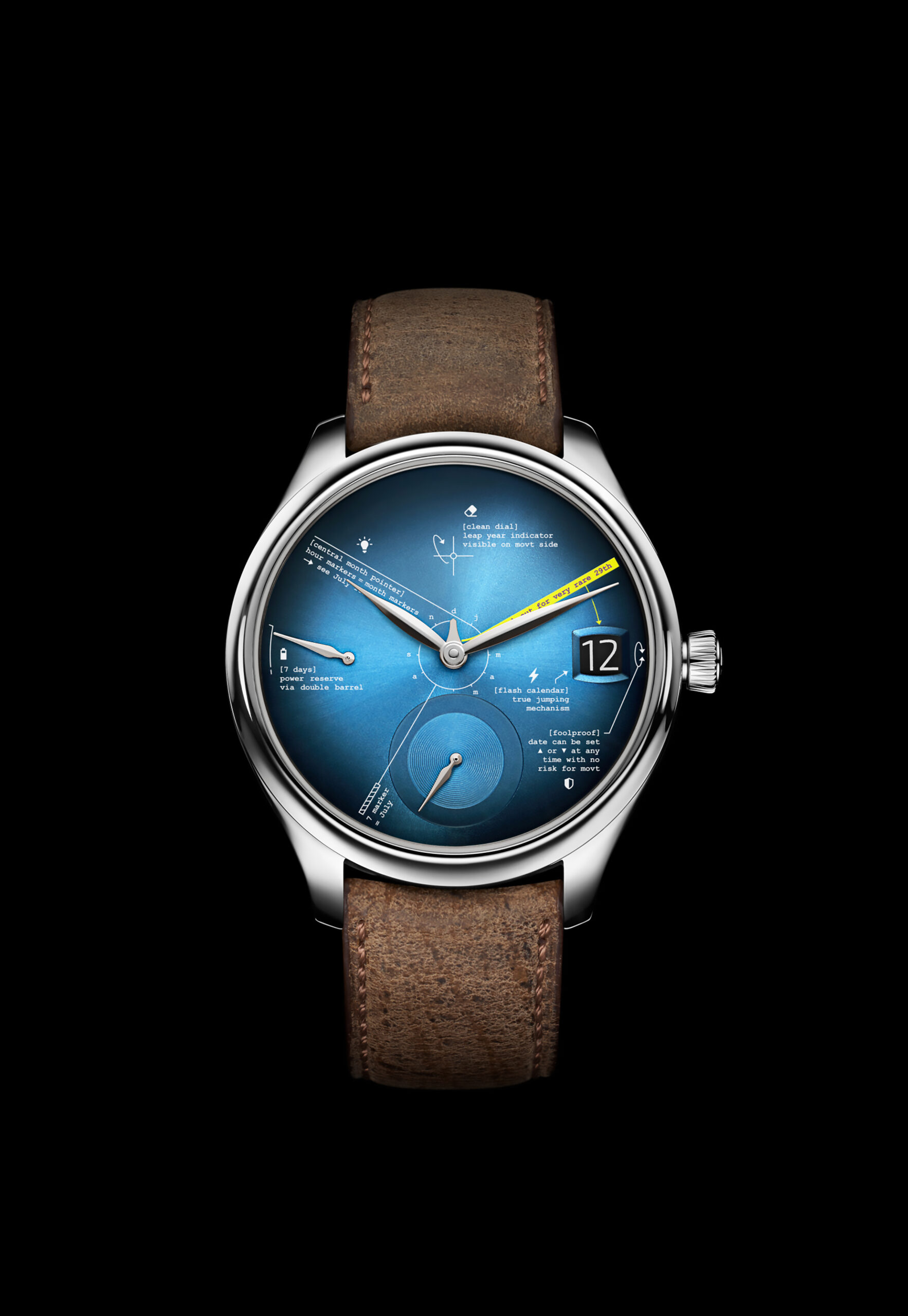 El nuevo calendario perpetuo de H. Moser & Cie. no solo es una actualización del que ya presentó en 2015, el Endeavour Perpetual Calendar Funky Blue. A este modelo se une una edición limitada que pone una sonrisa en la cara de los coleccionistas. Se trata de un clon del legendario reloj que viene con un tutorial en la esfera sobre cómo funciona su complicación estrella, la que podríamos decir que es la más fácil de leer en el mercado. Ahora, el guiño de la marca nos evoca los tiempos de escuela, cuando llevábamos un acordeón para ayudarnos en los exámenes. Su exceso de minimalismo con argumentos se transforma en un reloj único que muestra en su carátula cómo funciona el calendario perpetuo más simple.